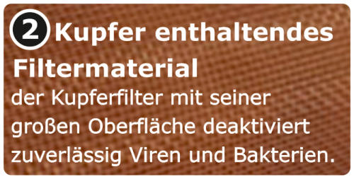 kupferhaltigen und 3-fach zertifiziertem Filtermaterial.